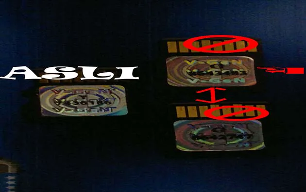Perhatikan pada gambar dibawah ini, ada keterangannya palsu atau aslu nya :