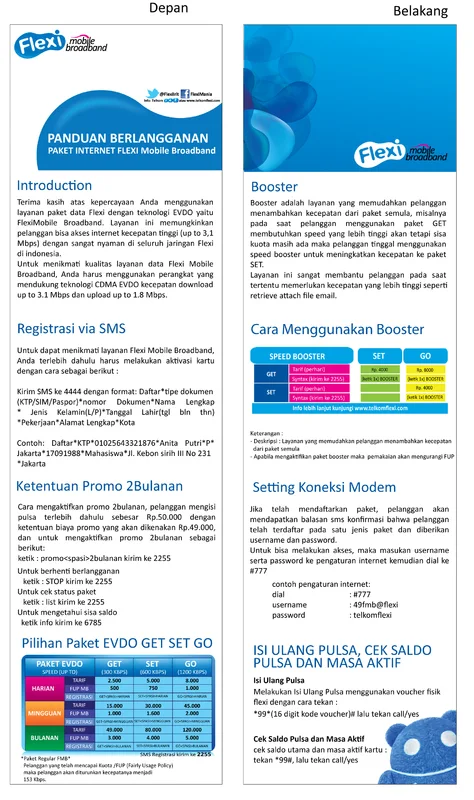 1. Registrasi kartu flexi MB (kartu-64K) ke 4444 (Nama, KTP dll.)