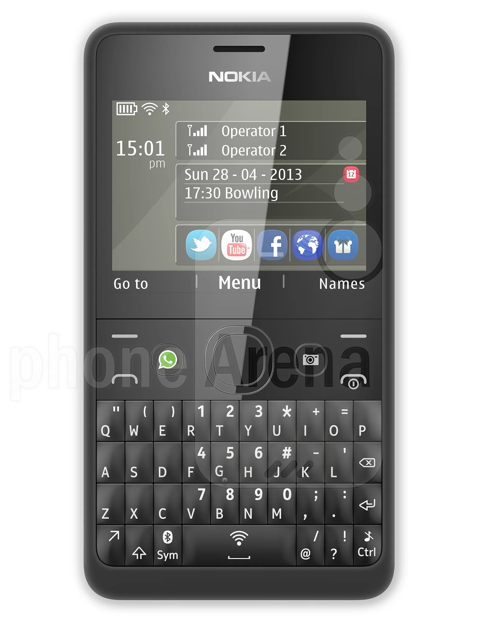 Nokia Asha 210 merupakan handphone pertama yang dibekali dengan tombol pintas Whatsapp, memberikan Anda akses cepat terhadap platform layanan pesan instan. Nokia dan WhatsApp juga sudah memberikan akses WhatsApp gratis pada handphone ini.
