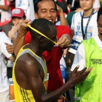 Foto Lucu Jokowi Kejar Pelari Kenya Saat Lomba lari Marathon