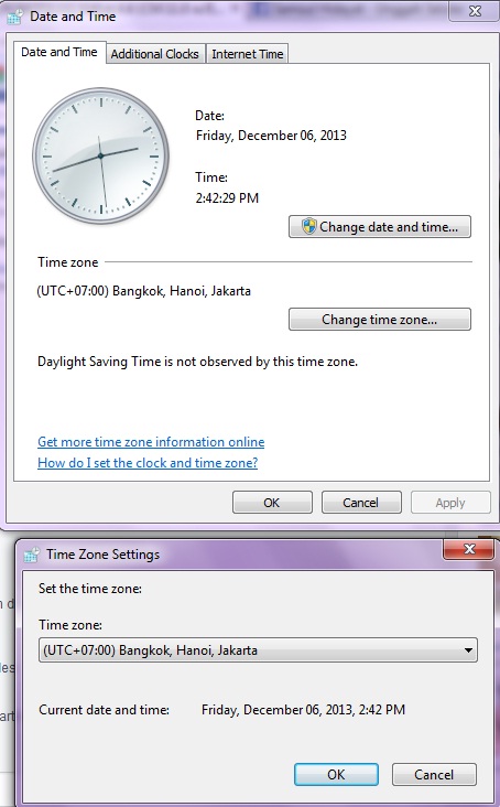 seperti gambar ini, jam dan tanggal serta time zone harus pas.