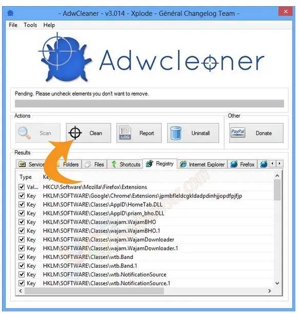 Download dan instal software AdwCleaner dari sini : Download, setelah di download, lalu jalankan, pilih "SCAN" :