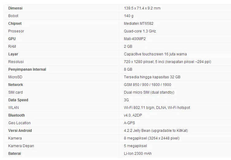 Berikut ini Spesifikasi Huawei Honor 3C :