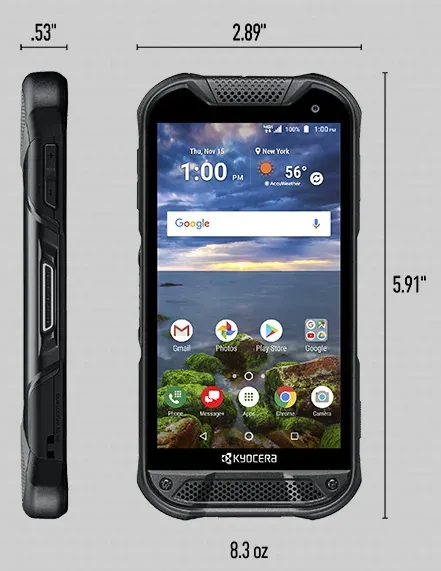 KYOCERA DuraForce PRO 2 dibangun untuk mengakhiri kondisi dan lingkungan yang keras. Ini adalah perangkat Kelas 1 Div 2 non-incendive, yang disertifikasi untuk memenuhi standar MIL-STD 810G untuk Benturan guncangan atau terjatuh, suhu ekstrim, radiasi, dan banyak lagi. Tampilan Sapphire Shield Verizon-eksklusifnya sangat tangguh terhadap goresan dan kerusakan benturan. DuraForce PRO 2 dilengkapi dengan garansi standar 2 tahun