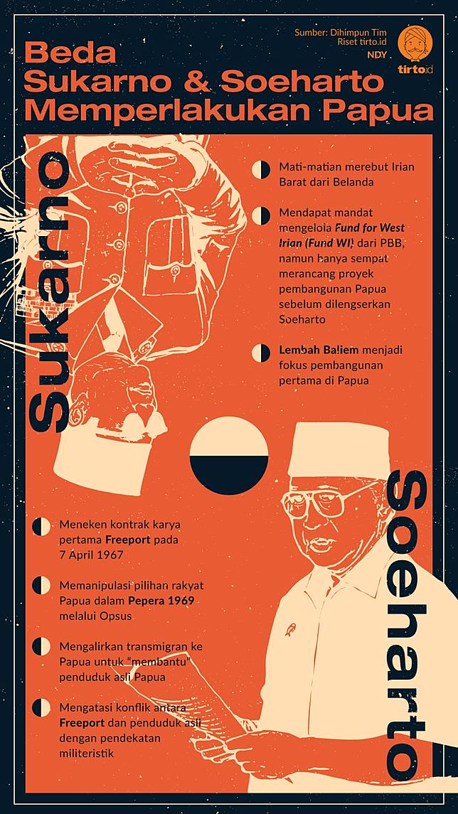 Infografik Beda sukarno dan soeharto memperlakukan papua