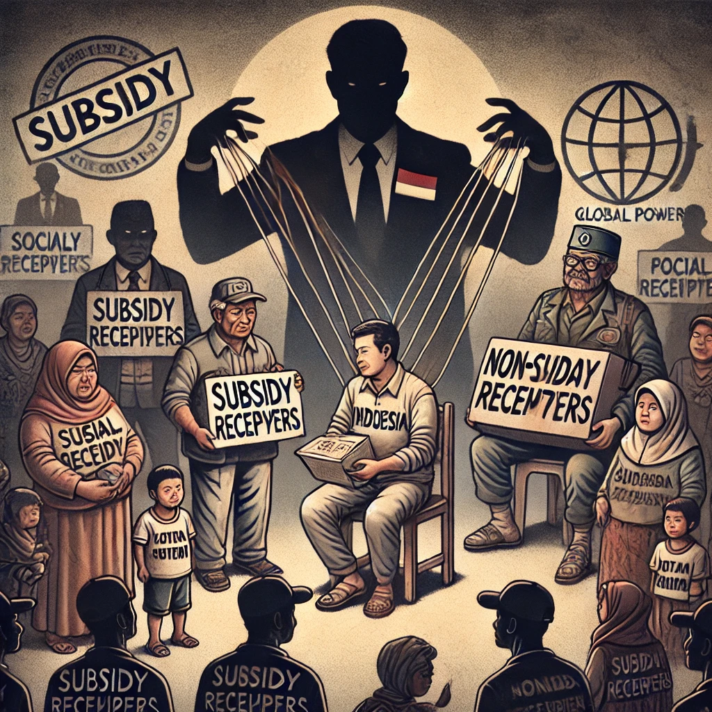 Subsidi dan bantuan sosial (bansos) adalah dua instrumen kebijakan publik yang dirancang untuk membantu masyarakat yang membutuhkan, terutama mereka yang berada di bawah garis kemiskinan. Namun, dalam konteks politik Indonesia, kedua alat ini sering kali digunakan sebagai strategi untuk mempertahankan kekuasaan dan mengontrol suara pemilih. Fenomena ini menciptakan dua golongan dalam masyarakat: penerima subsidi dan bansos yang dikategorikan sebagai "miskin," serta golongan non-penerima yang tidak mendapat manfaat langsung dari kebijakan tersebut. Pandangan ini menyoroti bagaimana subsidi dan bansos dapat digunakan secara strategis oleh elit global dan pemerintah Indonesia untuk mempertahankan kekuasaan, serta implikasinya terhadap tatanan sosial dan ekonomi.
